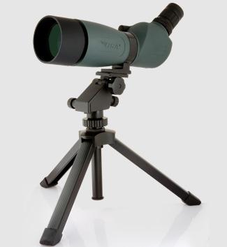 1. Spotting Scope. This new model has multiple lenses, a flat field of view and very little pincushion or barrel