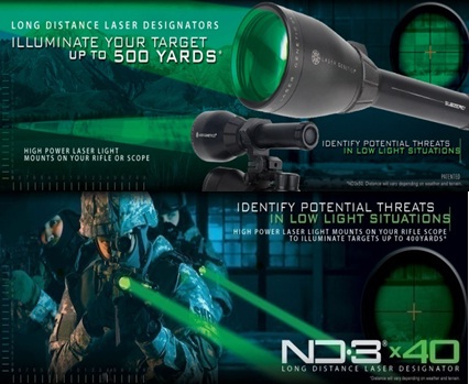 1. Laser Illuminators. The Laser designators are precision optical lighting instruments using advanced Laser technology. The rotary optical collimator uses a system of 9 fully multi coated lenses that allow full adjustment and control of beam diameter and intensity to focus light where you need it most. Rotating the collimator ring to minimum creates a bright micro beam of green laser light visible upto 8 km. Rotating the collimator ring to more open setting provides plenty of illumination to light a trail or paint a target upto 500mtrs.