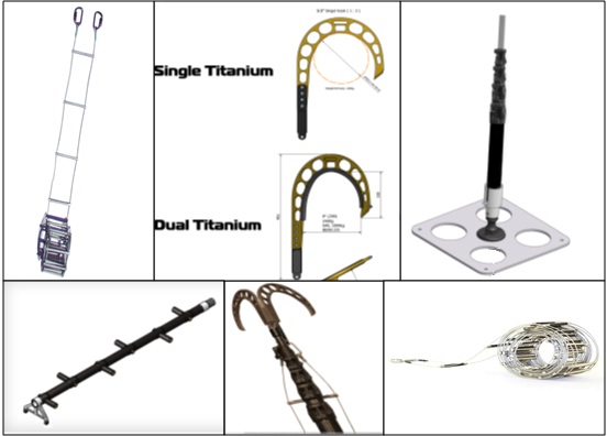 climbing and accessing buildings. Single and Dual titanium hooks are made with high quality materials (titanium gr.5)